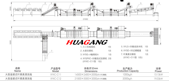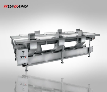 自动流水式工作台两边设有工作岗位,岗位上设置砧板,废料口,刀具存放槽。标准为三层式,原材料在中层运送,经由工人挑选除杂后的良品放到上层; 废品,烂菜叶,毛发等杂物通过工作台废料口投放到下层输送带运至废品收集车(收集车需要另外定做)。设备参数: