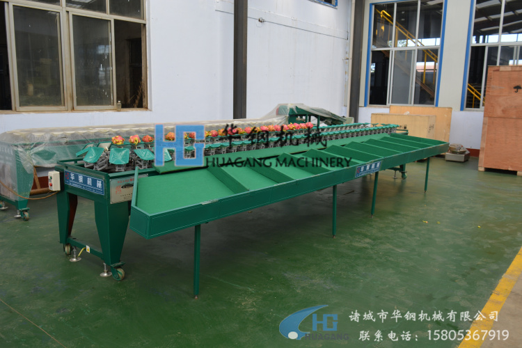 新品水果称重分级机 采用天平与杠杆原理,利用盛料器重量与砝码器所设定秤量,以游动时的移位与测量达到选择重量的分等分级。在全自动的传送中,快速正确的对各种需要分级的果蔬称重分选,