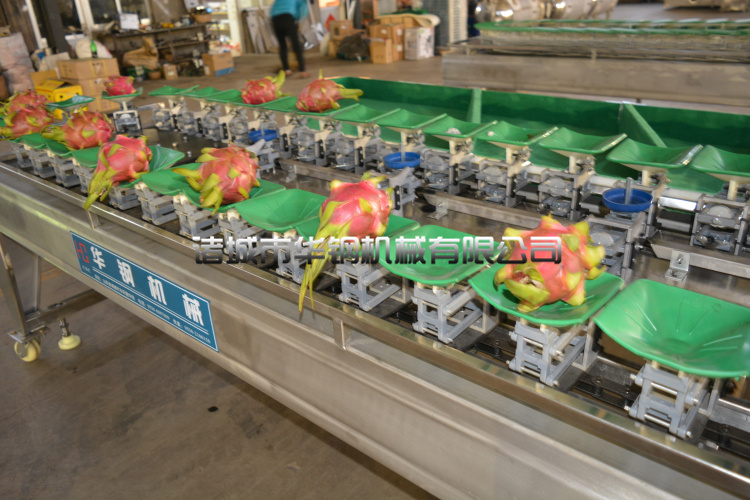 采用天平与杠杆原理,利用盛料器重量与砝码器所设定秤量,以游动时的移位与测量达到选择重量的分等分级。在全自动的传送中,快速正确的对各种需要分级的果蔬称重分选,例如火龙果、梨、苹果、芒果、桃、柑橘、沙糖桔、猕猴桃、西红柿、马铃薯、地瓜、李子、柿子、洋葱等,产生准确的分级。不但秤量准准确,而且具有不伤果实,效率高,易操作,使用范围广等特点,更能提升果品品质,增强果品市场竞争力,是农产品分级制度的机器设备。