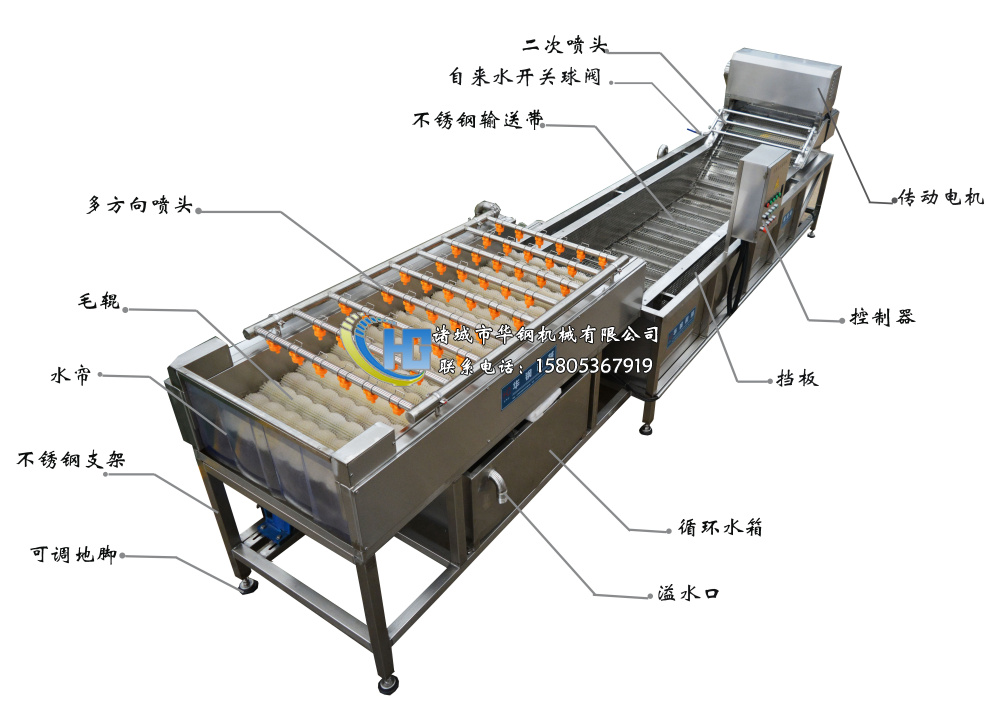 3.清水喷淋装置为一道清洗步骤,采用自来水进行再次清洗,同时起到对设备进行补水的作用。