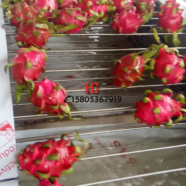火龙果清洗到风干,为了不损伤火龙果表面,采用一条滚杠式网带输送,即可有效的减少火龙果碰撞。入料口怎么摆放的,清洗掉泥沙后.出料口火龙果还是什么样子的。火龙果不会横七竖八。清洗后还是整齐有序,可直接风干沥水,然后进行包装,方便快捷,节省人工,也可以用于要求比较高的水果进行清洗,我们可以根据您一天清洗的产量,来给您推荐合适的清洗线长度及方案;
