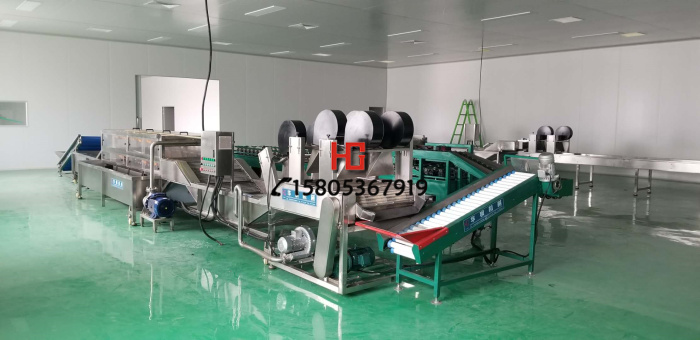 清洗机采用自动高压喷淋系统和泡沫发生器,通过毛刷与果蔬的直接接触,既可以清洗果蔬表面的污渍又可以保护果蔬不受损伤,并将果蔬推入下一加工环节。