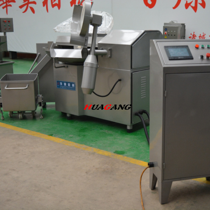 华钢系列125升高速斩拌机根据客户产品加工产品的不同,我们也是分为21KW和25KW两种,高转速可达到4500转每分钟,是细切、乳化各种肉泥肉馅的理想设备.