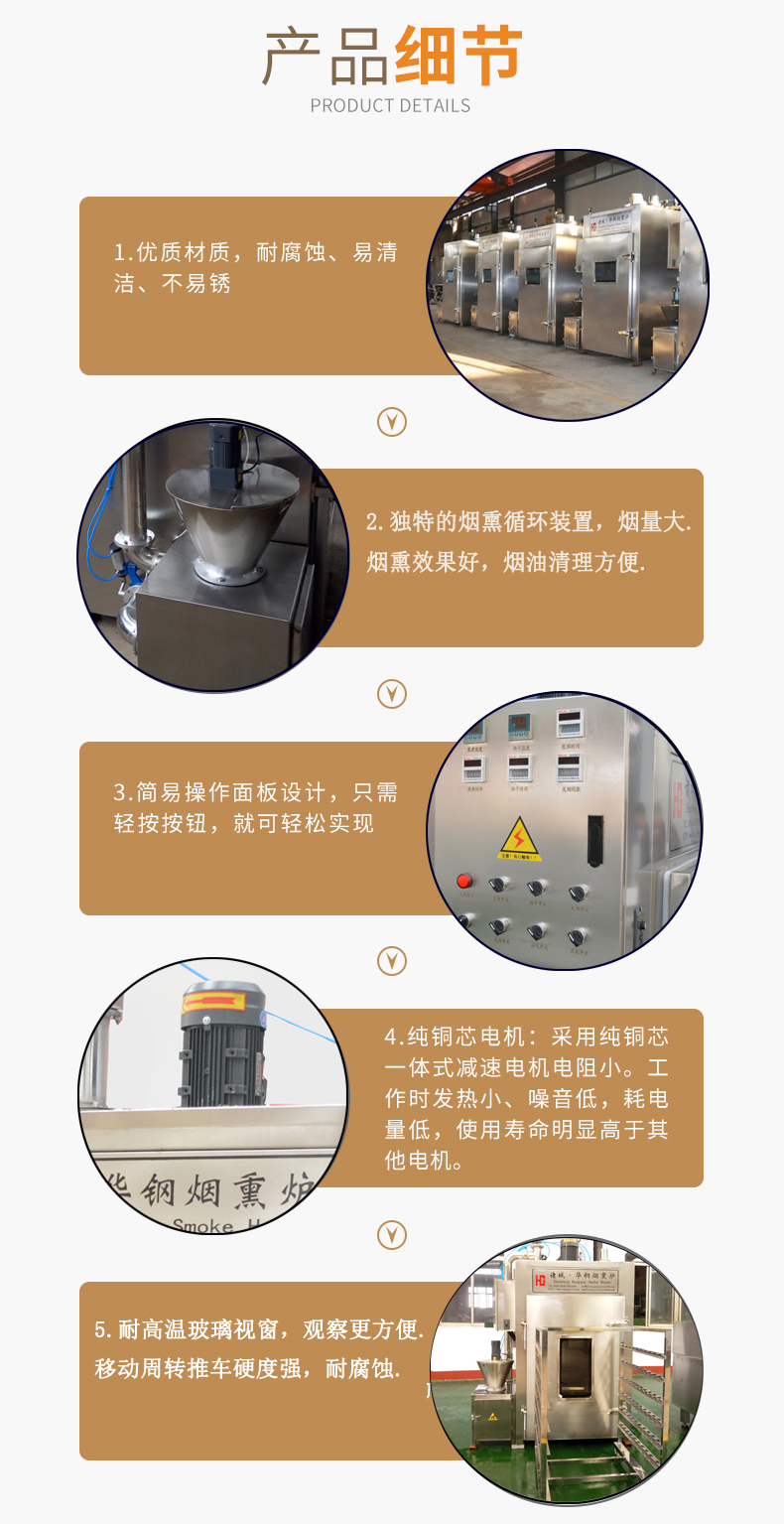 ①使肉制品产生特殊的风味 烟熏的吃是目的仅仅是为了提高食品的保藏性,随着保藏性能的冷冻设施进入一般家庭,人们无需花太多的经历考虑食品贮藏问题,而更多的是注重食品的色、香、味,所以烟熏的目的也逐渐从延长保藏期转变到增加制品的风味和美观上来。