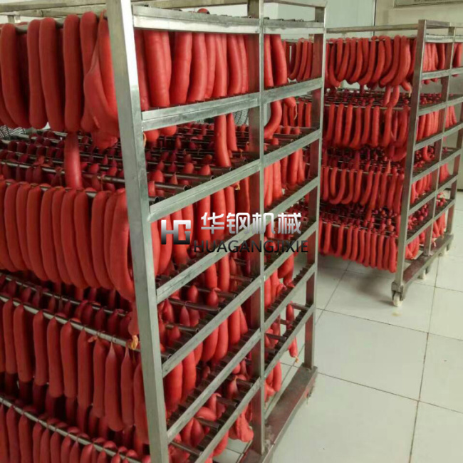 2.烟雾的浓度、温度、湿度、流速都对烟熏效果有影响。湿度过低,会使肉品表面迅速形成一层“干膜”,这样不利于烟熏成分的渗透。